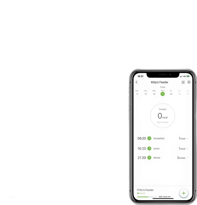 L'application PetKit est identique à celle du Solo : complète, fiable et intuitive. Jusqu'à 10 repas par jour programmables, portions réglables au gramme et historique sur 30 jours. Le système de fraîcheur avec sachet dessiccant est présent, comme sur le modèle supérieur.
